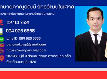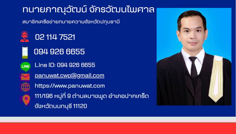 ทนายภาณุวัฒน์ จักรวัฒนไพศาล มือถือ 094 926 6655