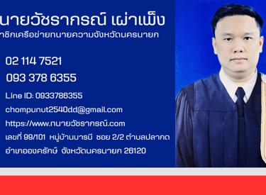 ทนายณัฐถพงษ์ หนุนครบุรี มือถือ 081 281 0199