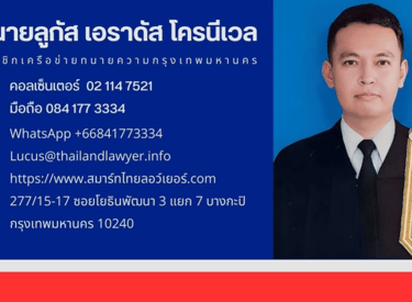 ทนายลูกัส เอราดัส โครนีเวล มือถือ 084 177 3334