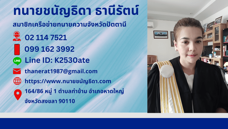 ทนายชนัญธิดา ธานีรัตน์ มือถือ 099 162 3992