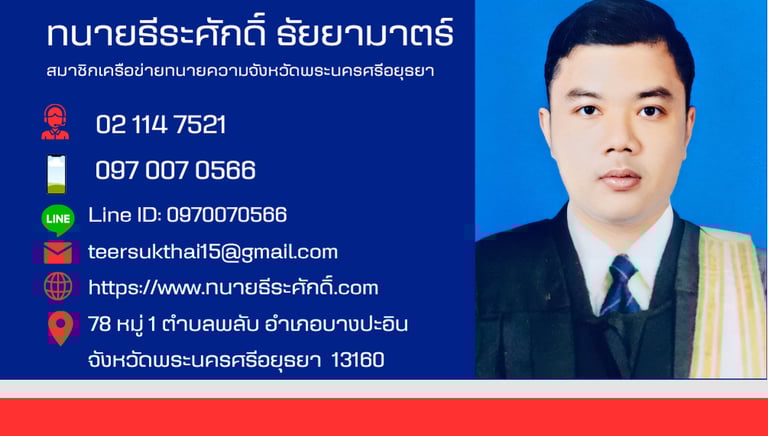 เว็บไซต์นี้อยู่ระหว่างการพัฒนา ต้องการปรึกษาหรือติดต่อทนายความ โทร. 081 803 4097