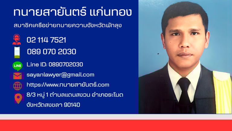 ทนายสายันตร์ แก่นทอง มือถือ 089 070 2030